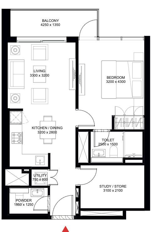 Diese 1-Bedroom plus Study Einheit gehört zu den gefragtesten Apartmenttypen in diesem Segment. Denn: Solche Grundrisse sind in Dubai nur in ausgewählten Sobha-Entwicklungen zu finden – ideal für alle, die ein kompaktes, aber vielseitig nutzbares Zuhause suchen.